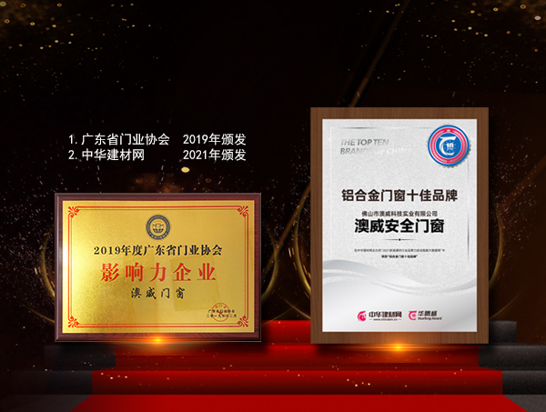 ① 中國商品質量名優(yōu)品牌推廣中心 2010年頒發(fā)《商品與質量》消費市場調查中心 2010年頒發(fā) ② 廣東省門業(yè)協會 2017年頒發(fā)